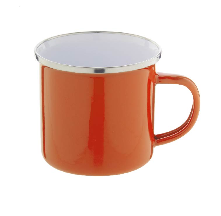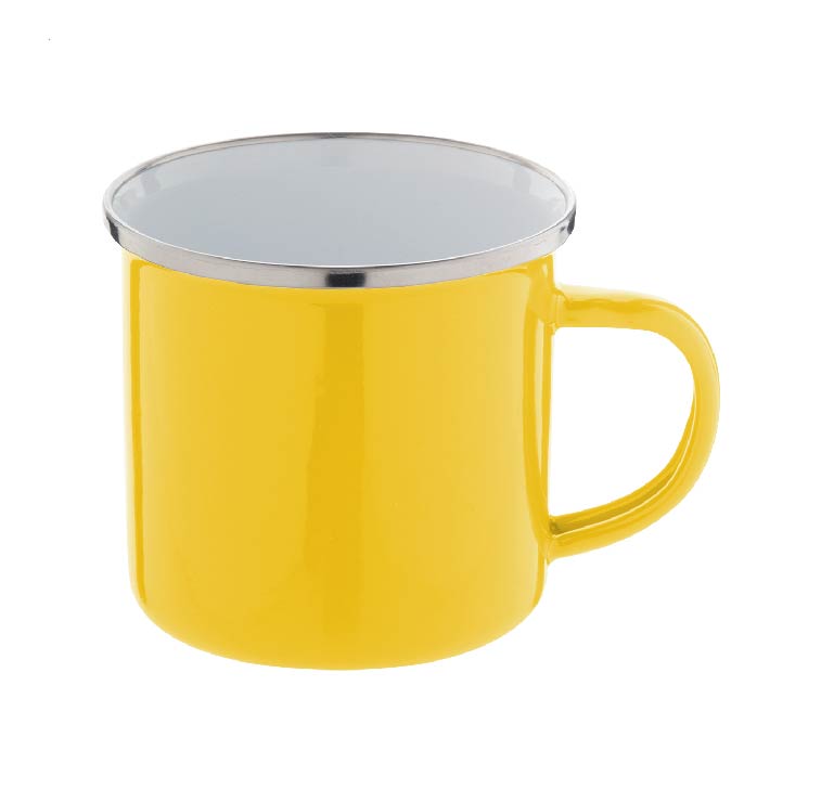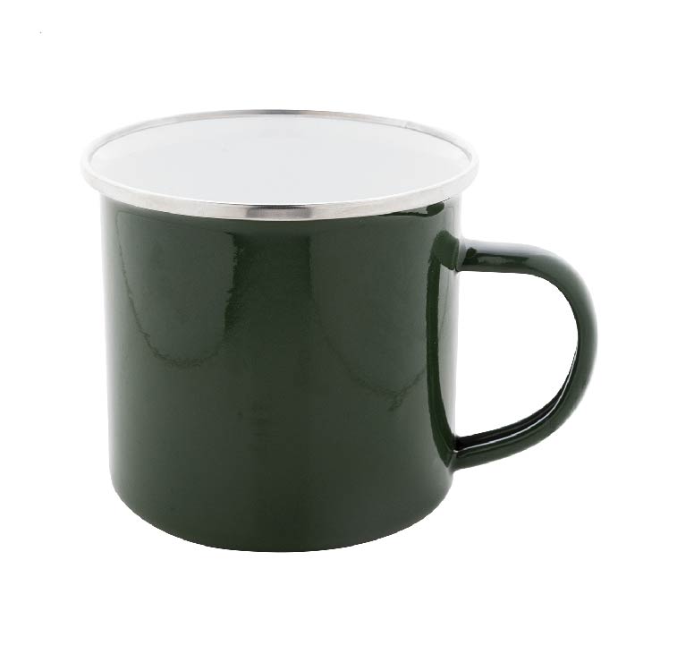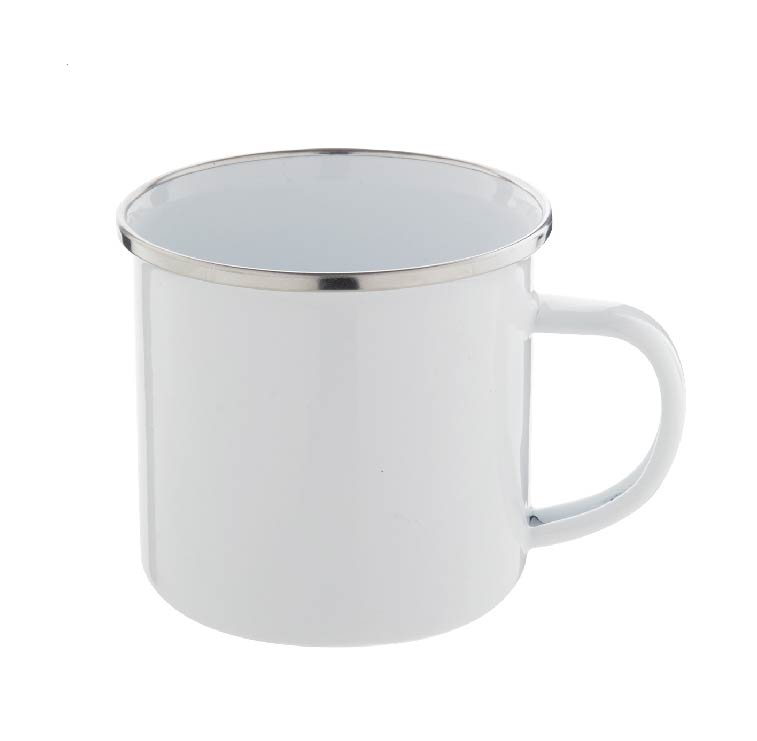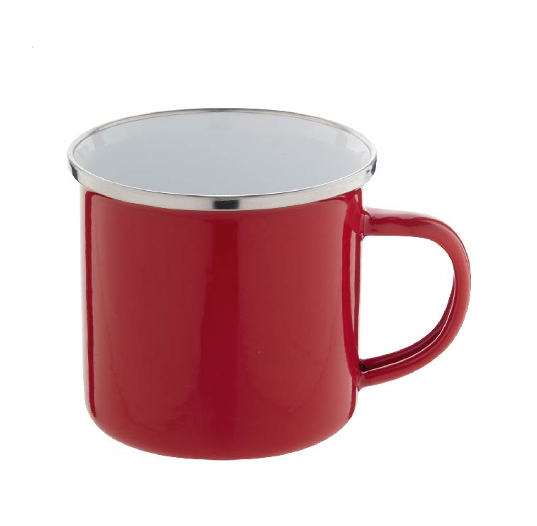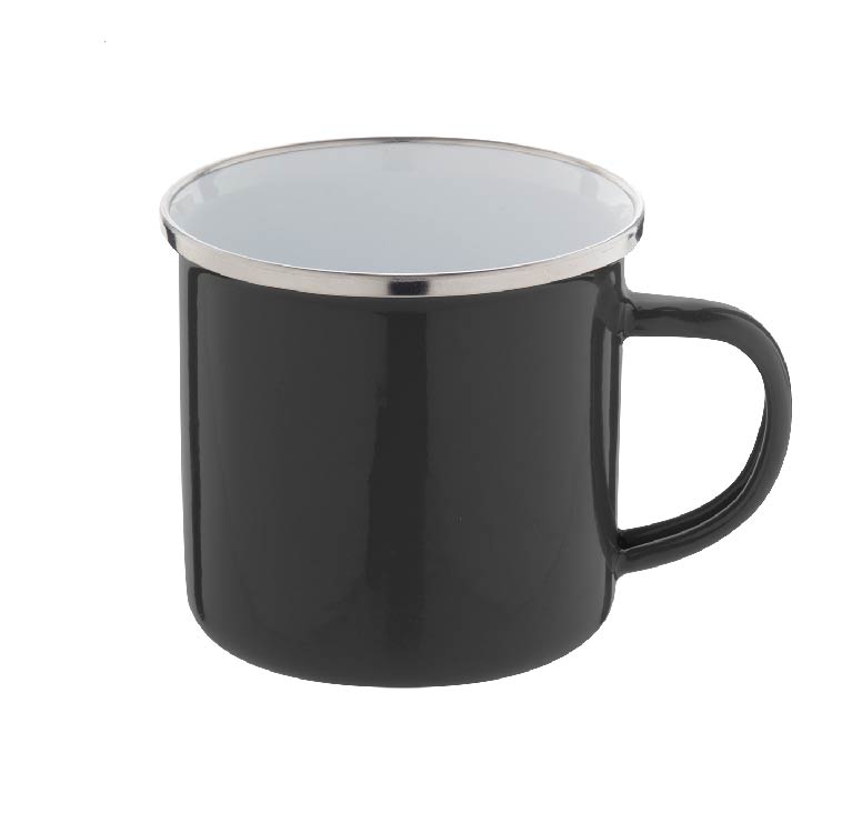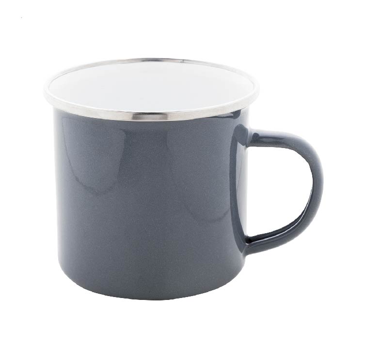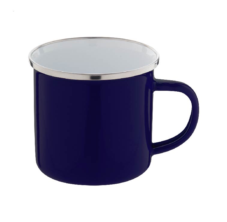 Винтидж метална емайлирана чаша с ръб от неръждаема стомана.