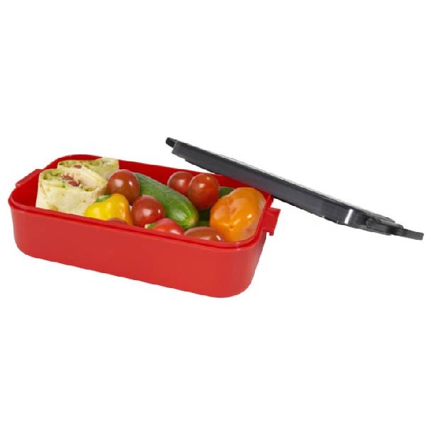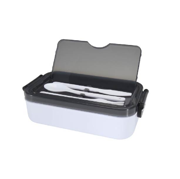 Стилна кутия за храна с комплект прибори, която прави храненето навън удобно и практично. Разполага с просторно отделение, което поддържа храната свежа и добре организирана. Включените прибори се съхраняват в отделно отделение върху капака, което ги прави лесни за носене и идеални за работа, училище или пътуване.