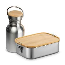 Комплект алуминиева кутия за сандвичи с бамбуков капак