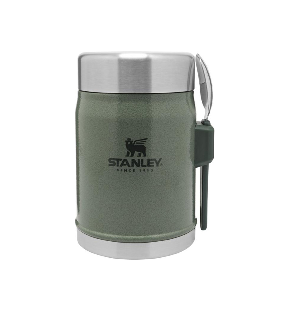 Stanley Legendary Food Jar със сгъваем прибор (spork) е идеалният избор за хранене в движение – независимо дали пътувате или къмпингувате. Компактен, но достатъчно вместим, той побира любимите ви топли или студени ястия.Изолираният капак разполага с клапан за освобождаване на налягането, което улеснява отварянето при температурни разлики. Широкият отвор позволява лесно пълнене, сервиране и почистване.Изработен от рециклирана неръждаема стомана, съдът е подходящ за почистване в съдомиялна машина (горен рафт). В комплекта е включен и прибор от неръждаема стомана (spork), който се закрепва сигурно към страничната стойка – винаги под ръка, когато ви потрябва.