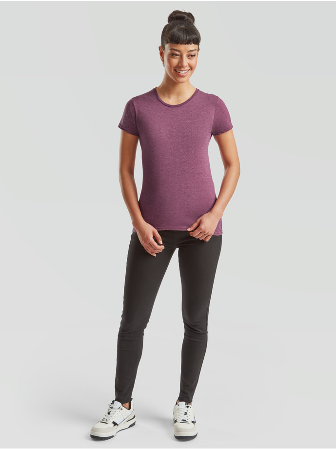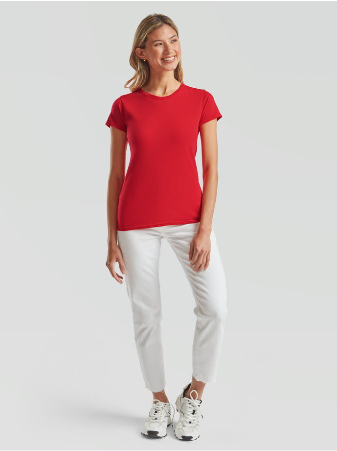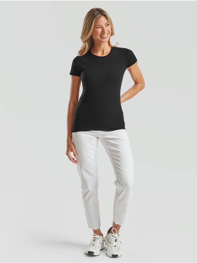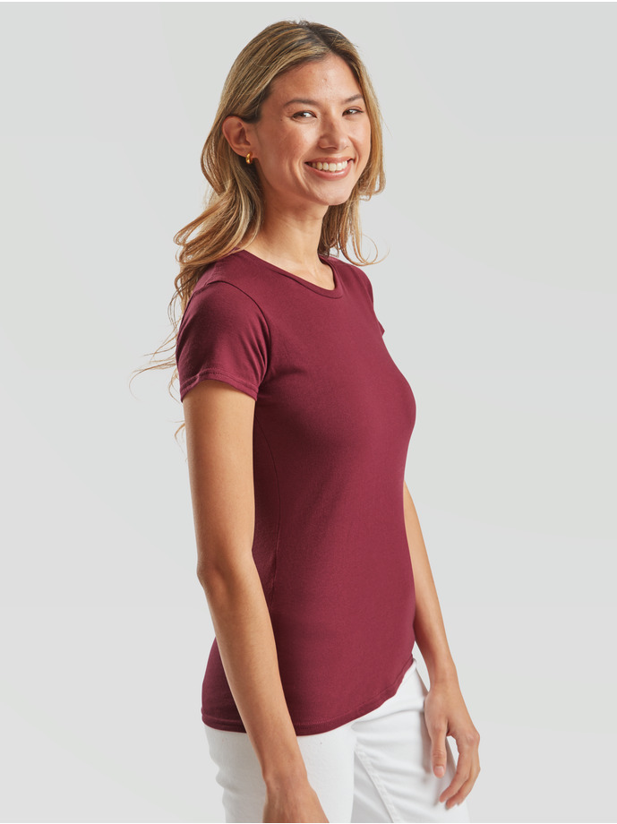 Тениската е леко вталена, с обло тънко деколте и къси ръкави. Свободната кройка ви осигурява свобода на движение, а материята – 100% combed ringspun cotton мекота и лекота при носене. Новост за Fruit of the loom е лесния за отстраняване етикет, което прави тениската лесна за ребрандиране.