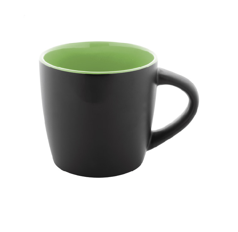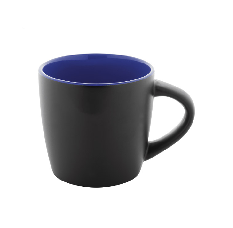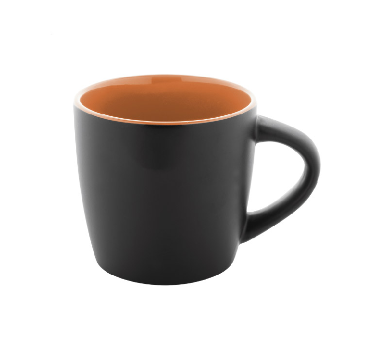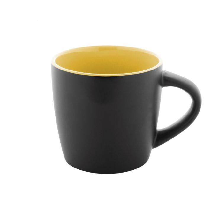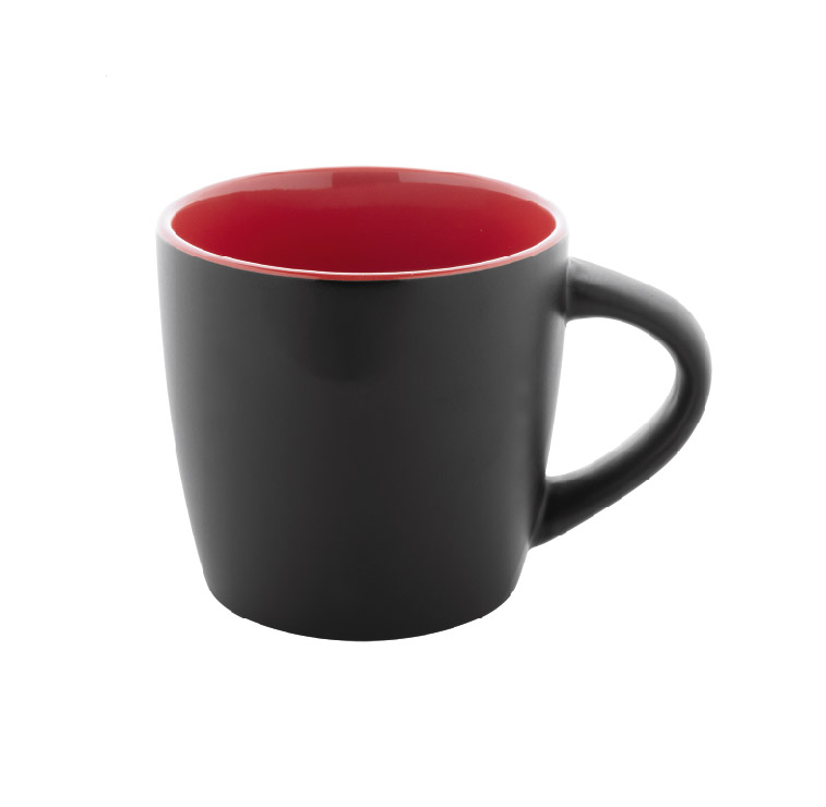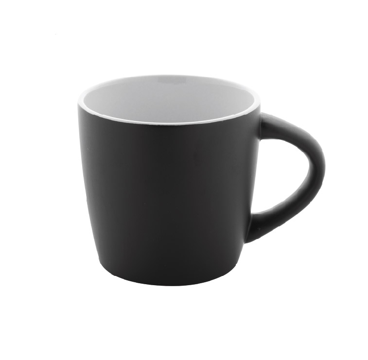 Висококачествена керамична чаша с матово черно външно покритие и гланцово цветно вътрешно покритие.